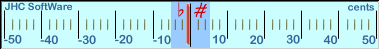 The tuning needle in G-tune lets you instantly see how in-tune, or out-of-tune, your instrument is. When tuned precicely, the needle will be in its central position. If the tuning is out, the needle will move to the left or right. The scale is calibrated in cents (there are 100 cents per semitone) and the central region gives a measure of what is good enough for most occasions.