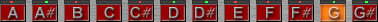 G-tune works in a hands-off mode so that you do not need to select any notes (or string values) before you tune. Instead, G-tune always automatically detects the correct note and illuminates the note indicator so that you always know which note is being tuned. This display is used in conjunction with the tuning needle (above). Above each note, an indication of the current temperament is shown.